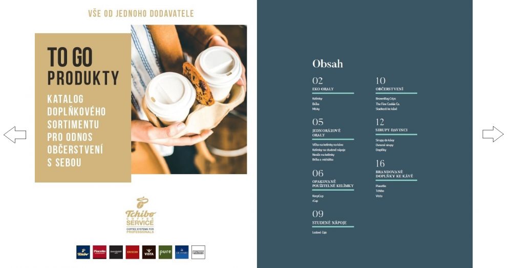 Hledáte vhodné obaly a doplňky pro váš To Go Business? Zalistujte se spolu s námi do elektronického katalogu doplňkového sortimentu pro odnos občerstvení a nápojů s sebou. Vybírat můžete z široké nabídky nejrůznějších typů kelímků, víček, brček, nosičů, praktických doplňků nebo občerstvení.