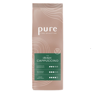 Rozšiřte nabídku horkých nápojů o produkty značky PURE Fine Selection. Nápojový prášek s obsahem kávy a kakaa, Typ Irish Cappuccino.